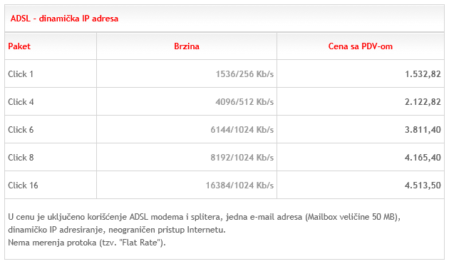Ugovor se zaključuje na 12 meseci, a u okviru Open ADSL paketa korisnik dobija i wireless modem.