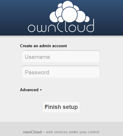 - Učitajte veb brauzerom http://vašsajt/owncloud kako bi završili instalaciju