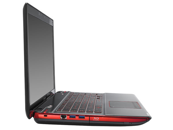 Izgled samog uređaja se bazira na crveno crnom koloritu u koji su lepo uklopljeni portovi i dugmići. Sa leve strane možemo videti ulaz za mrežu, dva usb 3.0 porta i BluRay uređaj. Sa desne ulaze za mikrofon i slušalice, jos dva usb 3.0 porta, HDMI i VGA portovi i ulaz za napajanje.